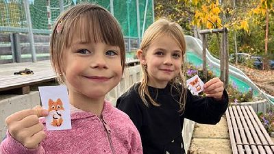 7.11. jsme zachránili Budulínka od zlobivých lištiček. Pohádku o Budulínkovi jsme si nejdřív přečetli a poté jsme se vydali na lov lištiček.